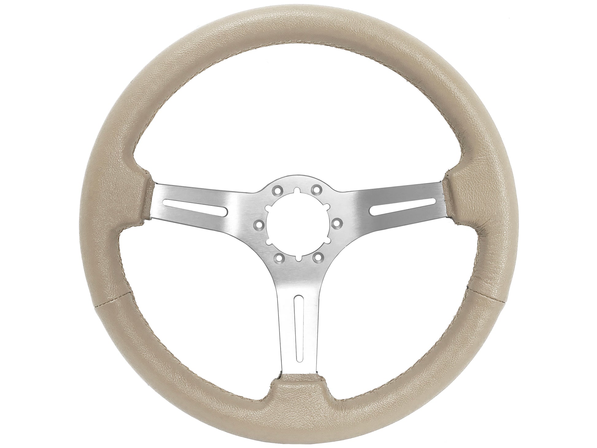 14" Tan Leather Steering Wheel, 6-Bolt Brushed Aluminum Spokes